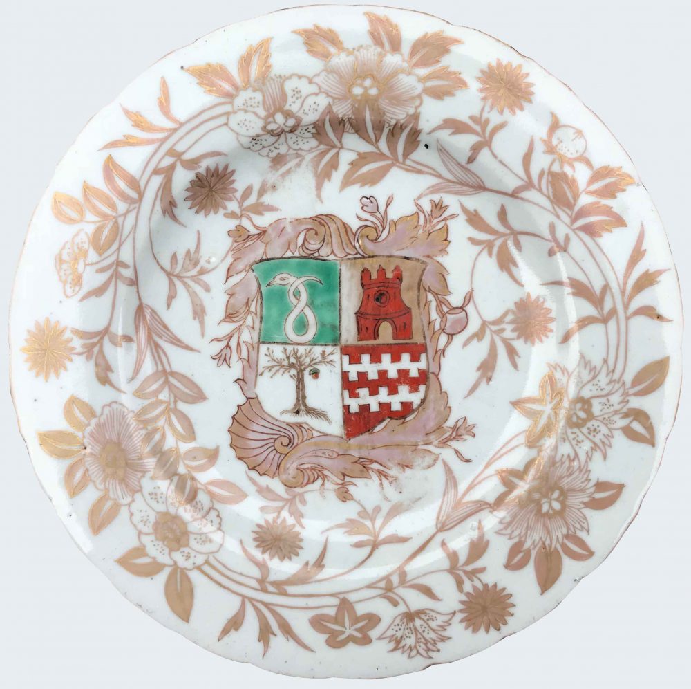 Ces armes ont été précédemment à a famille portugaise Brandao (Soame Jenyn’s, Japanese Porcelain, Faber & Faber, 1965), mais des recherches récentes ont démontré qu’il s’agissait probablement de la famille hollandaise Van der Meij de Dordrecht.