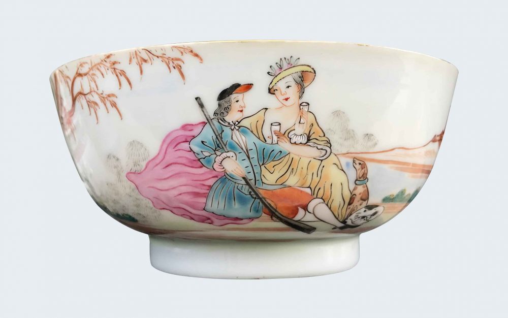 Une assiette avec ce décor en polychromie est illustrée par Hervouët & Bruneau dans La porcelaine des Compagnie des Indes à décor occidental, p. 70, no. 3.16