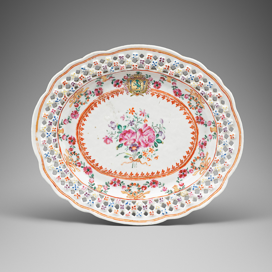 A Chinese armorial (unrecorded) oval tray for the French / Irish market (Sutton de Clonard). Qianlong