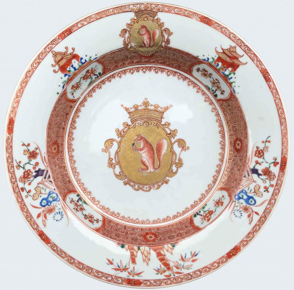 A very large Chinese dish with the coat-of-arms of Count Gustav Tessin, Swedish Ambassador to Paris, Prime Minister of Sweden.