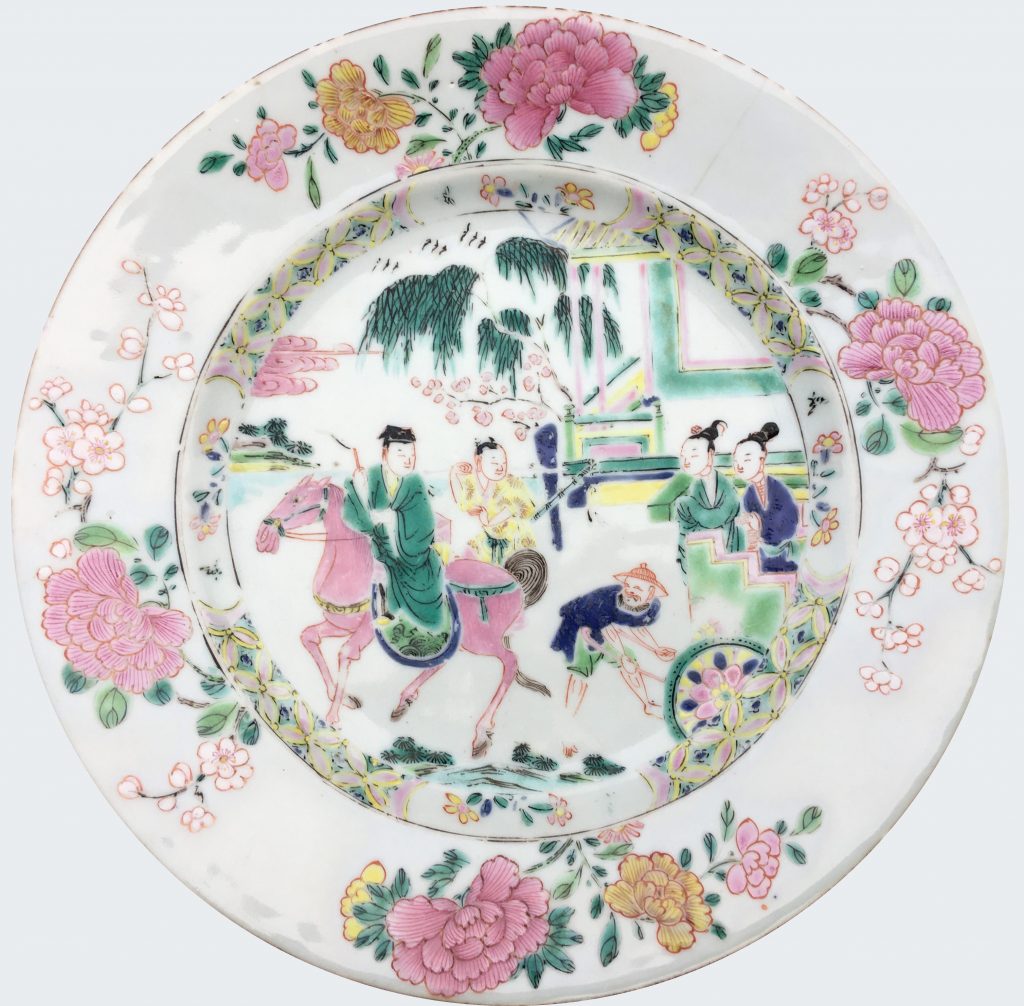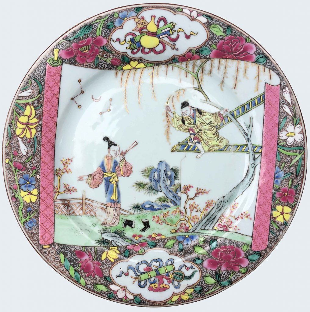 A Chinese famille rose “Romance of the Western Chamber” plate. Yongzheng period.