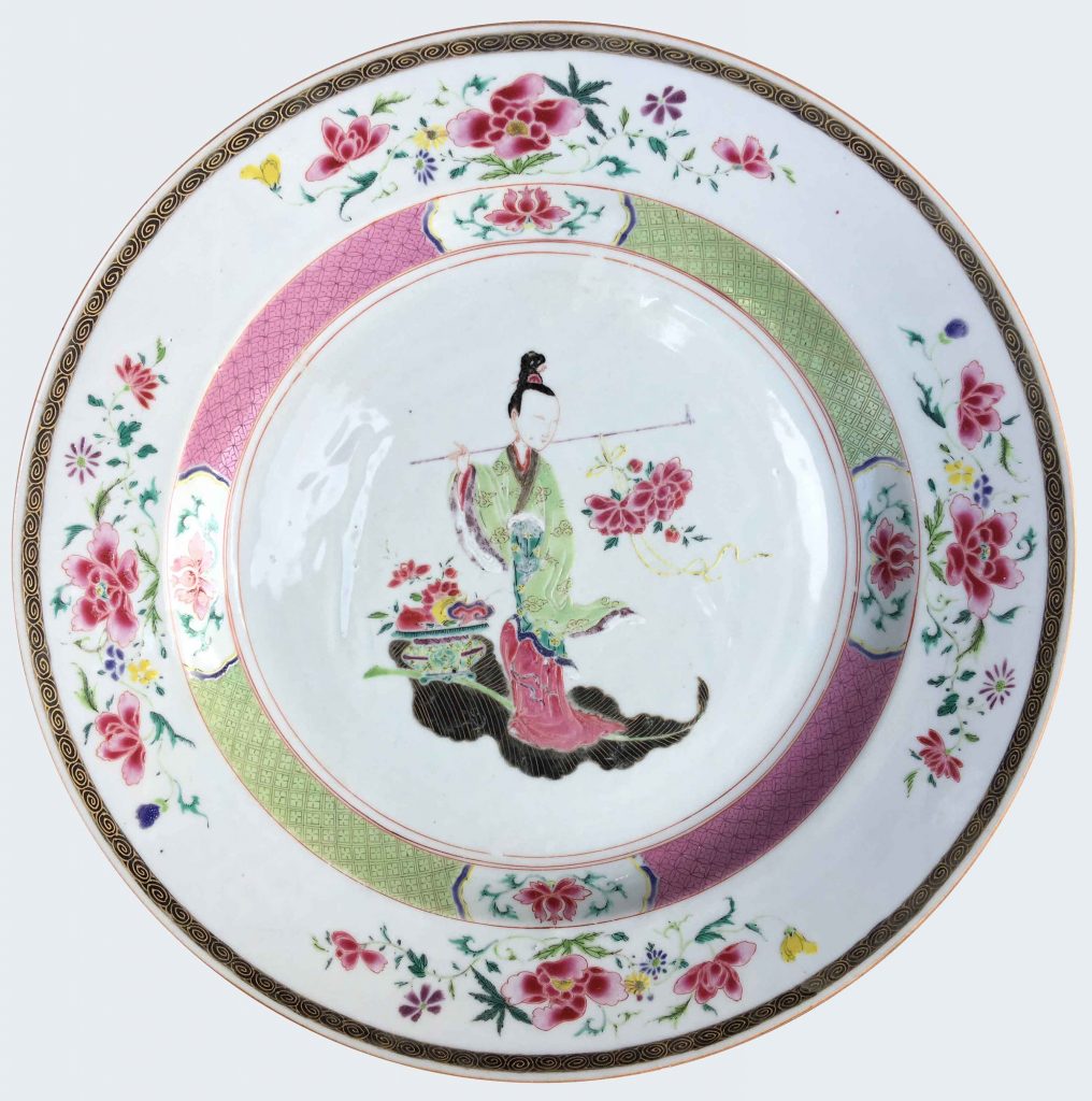 A famille rose charger (from a pair) decorated with Lan Tsai-Ho. Yongzheng period.