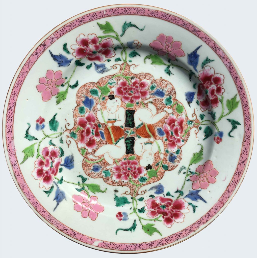 A Chinese famille rose plate decorated with the hoho. Yongzheng period.