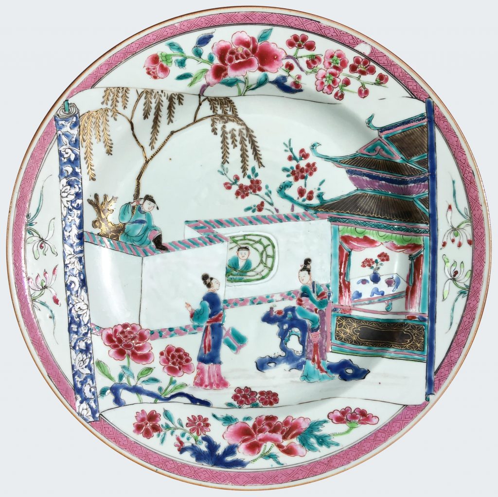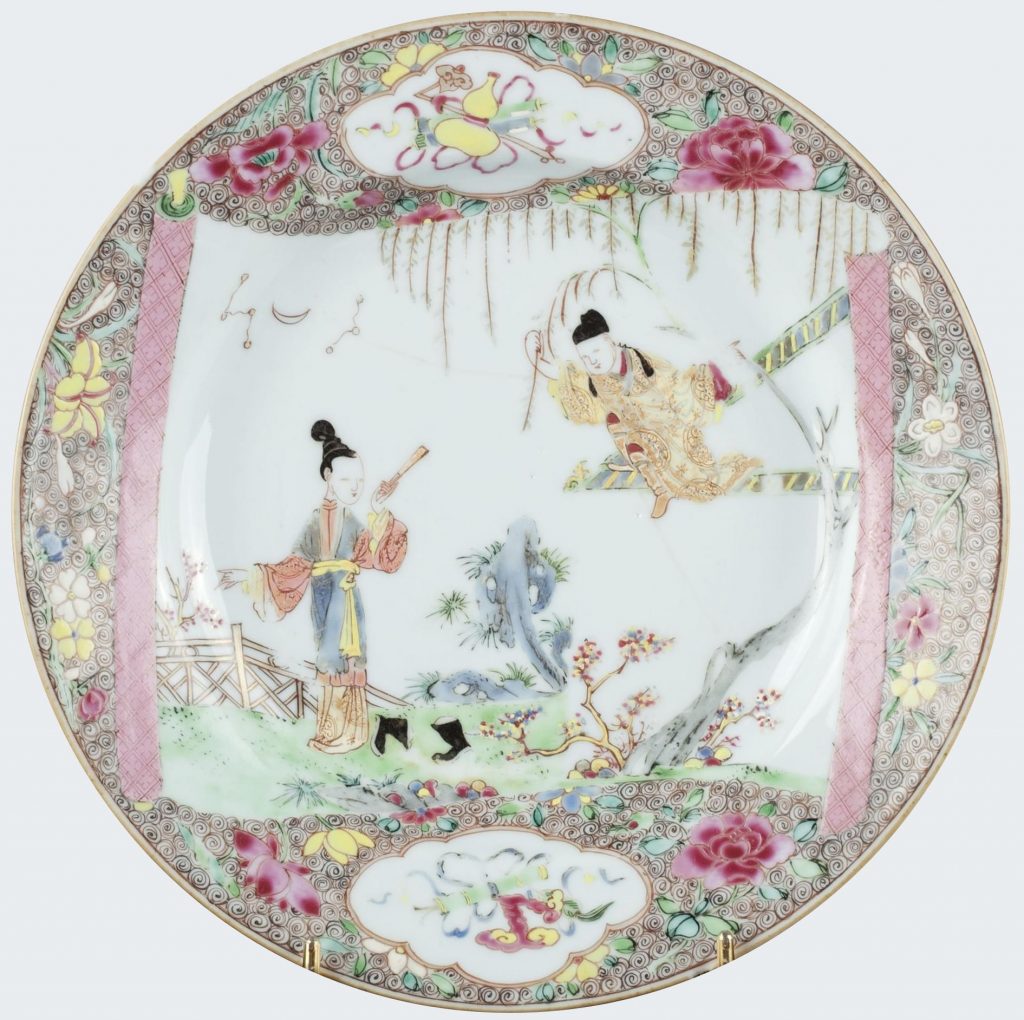 A Chinese famille rose plate decorated with figures. Yongzheng period.