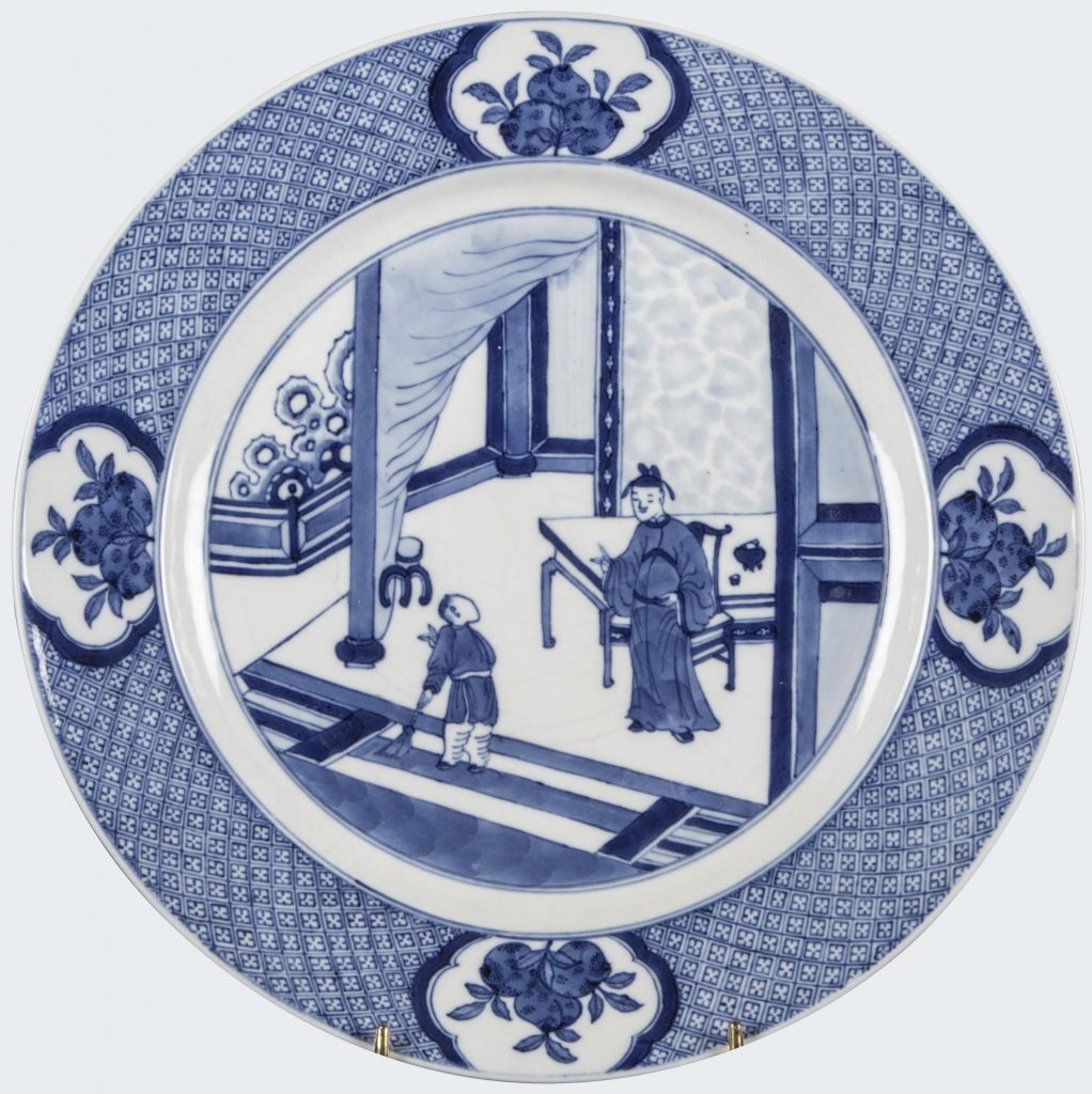 A Chinese blue & white plate decorated with figures. Kangxi period.