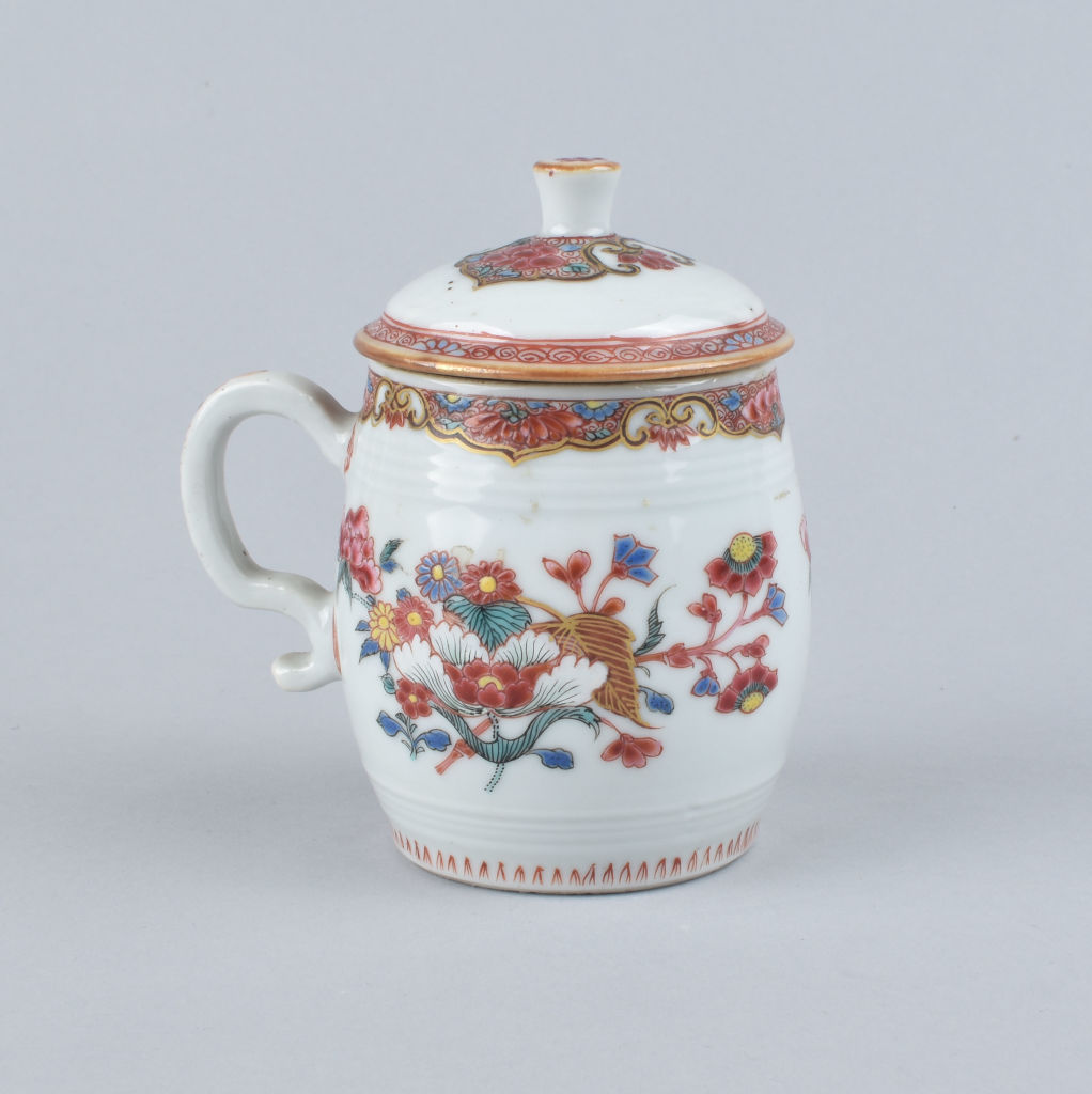 A Chinese famille rose mustard pot decorated with flowers. Qianlong period.