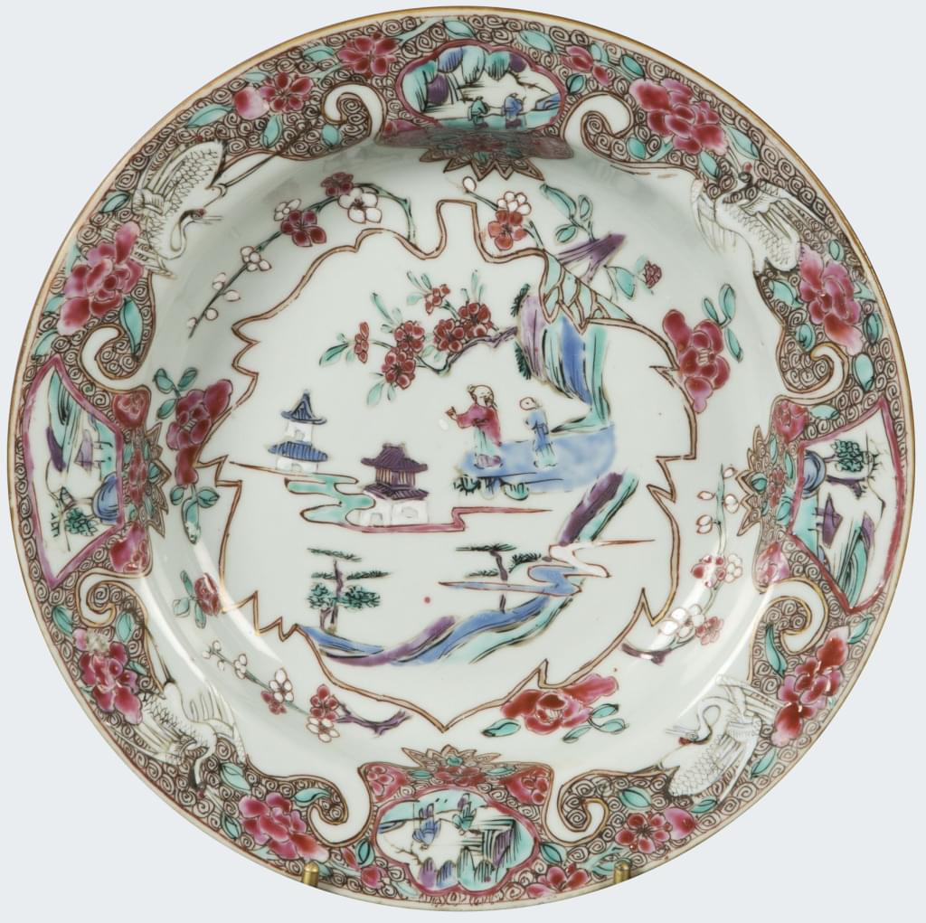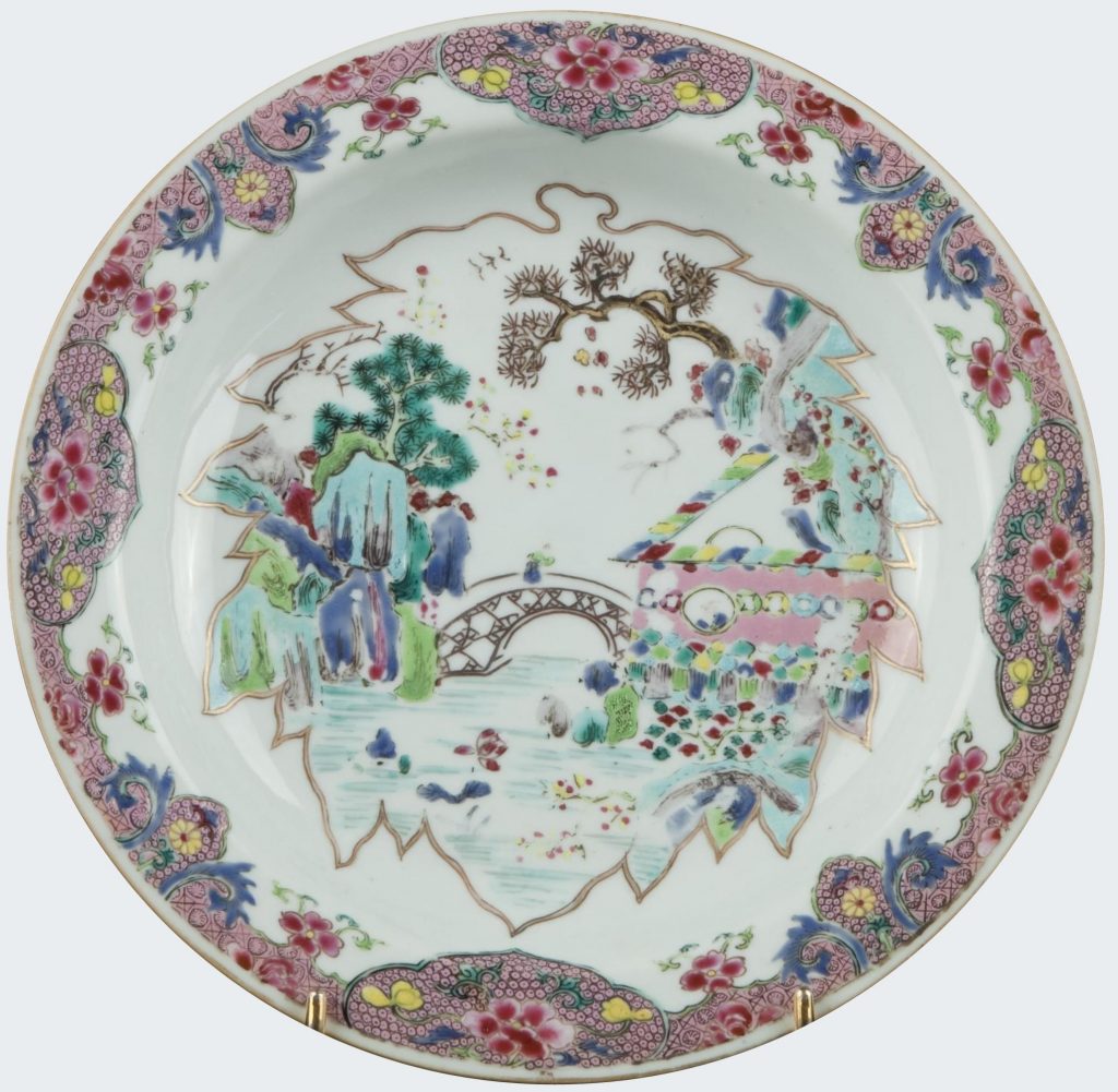 A Chinese famille rose “Pronk-studio” plate. Qianlong period.