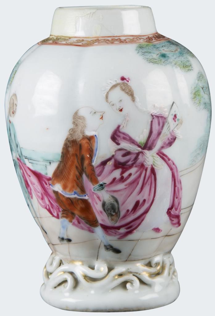 A Chinese sugar pot with a european subject. Qianlong period.