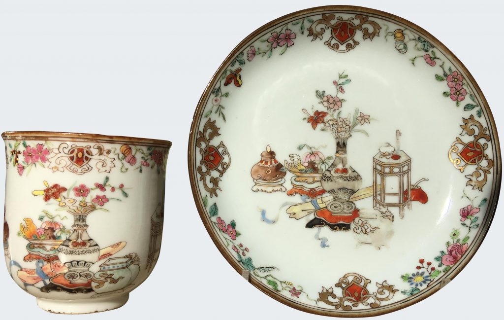 A Chinese famille rose cup decorated with the hundred antiquities. Yongzheng period.