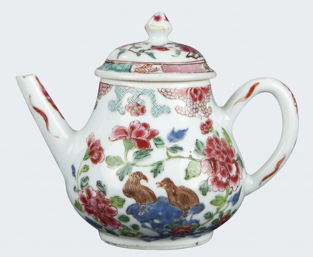 A Chinese teapot decorated in famille rose enamels. Yongzheng period.
