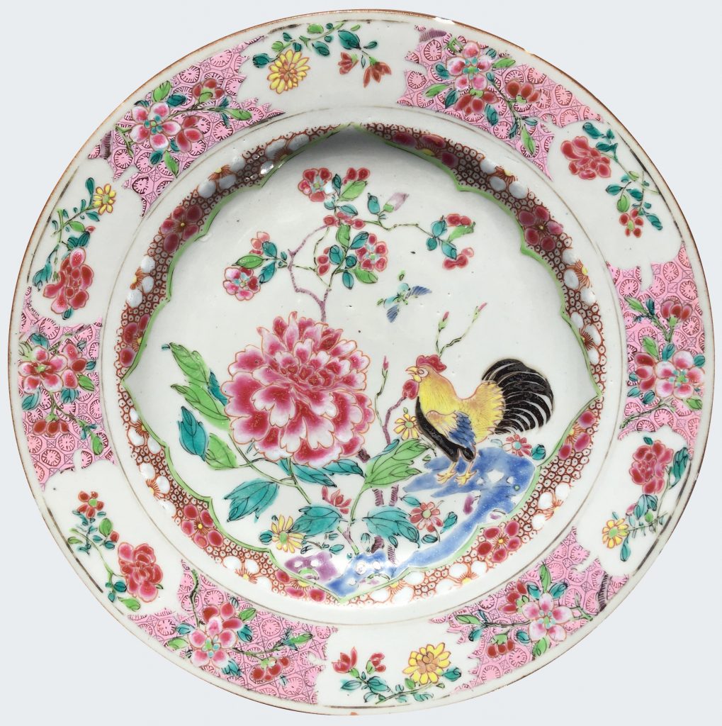 A Chinese famille rose « cockerel » plate. Yongzheng period.