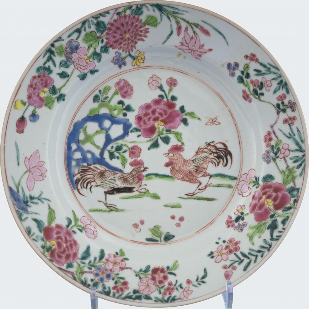 An unusual Chinese famille rose “cockerel” plate. Qianlong period.