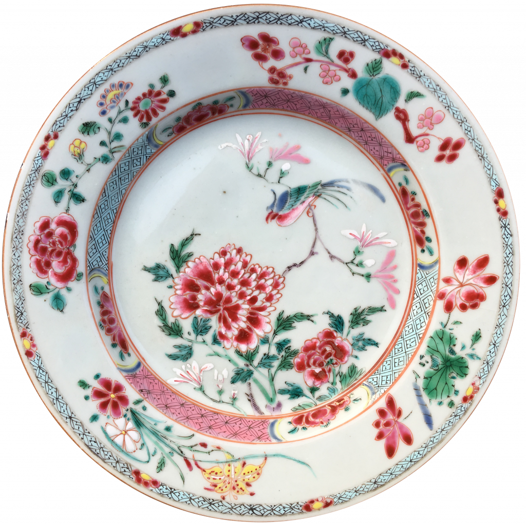 A Chinese famille rose plate decorated with a bird. Yongzheng period.