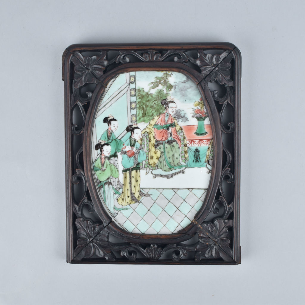A very fine Chinese famille verte panel decorated with the Empress. Kangxi