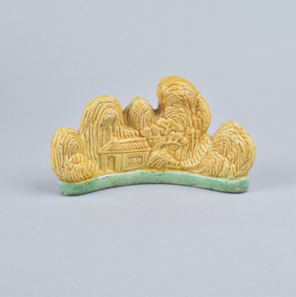 A Chinese yellow and green brush rest. Kangxi
