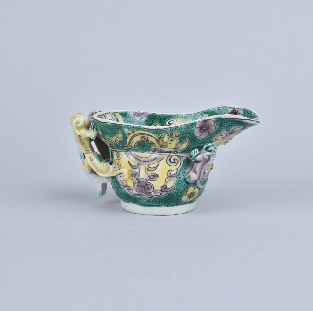 A Chinese famille verte biscuit libation cup. Kangxi