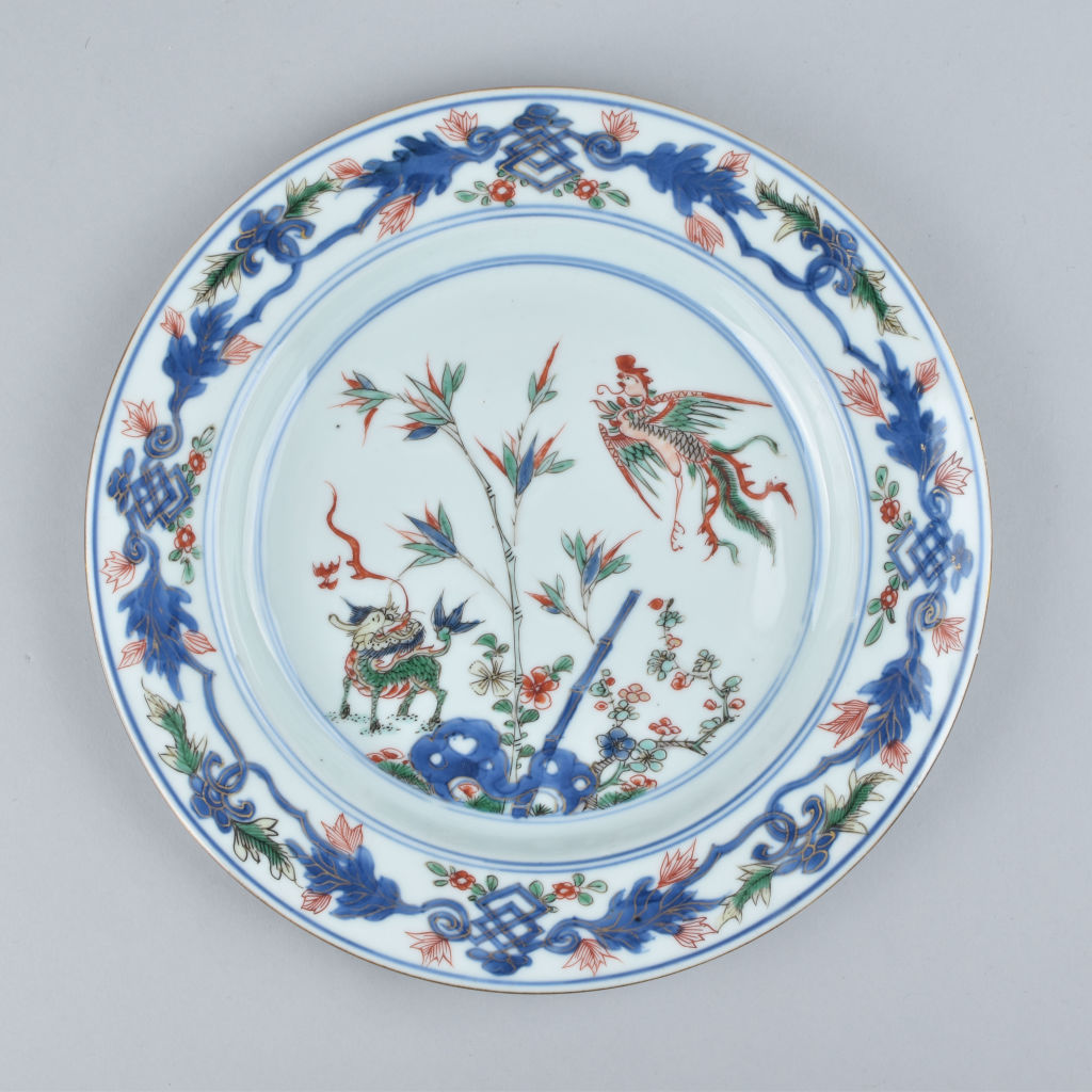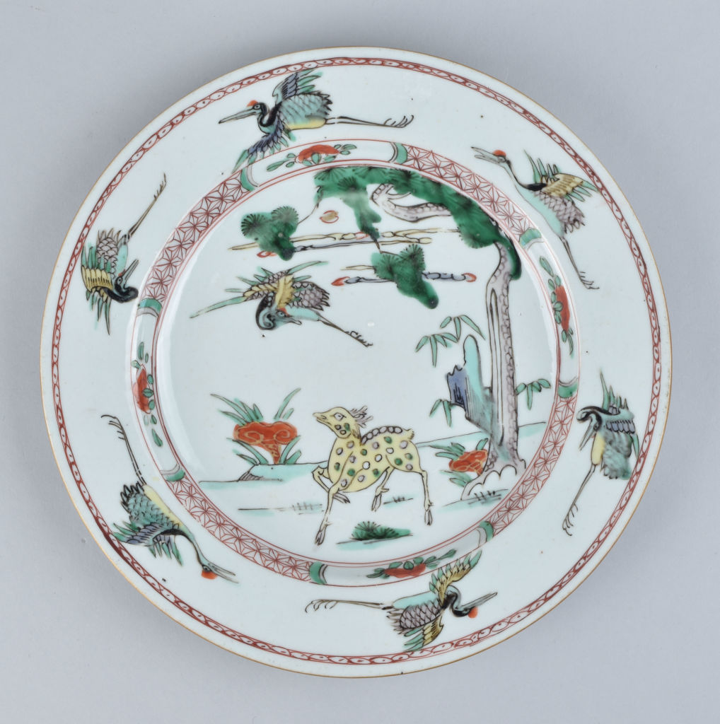 A Chinese famille verte dish in the Kakiemon style. Kangxi period.