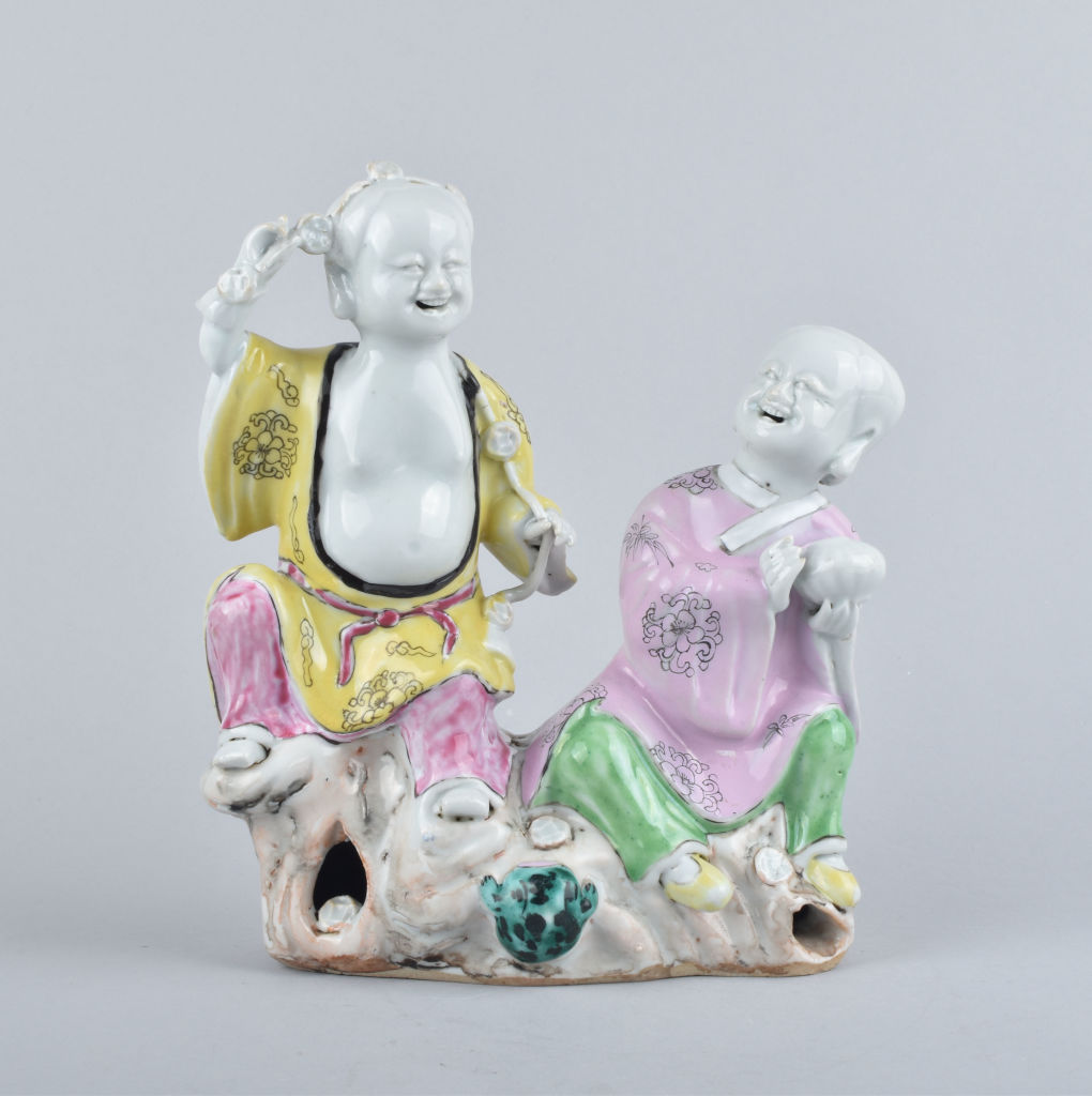 A large Chinese famille rose group representing the Hehe Erxian. Qianlong period