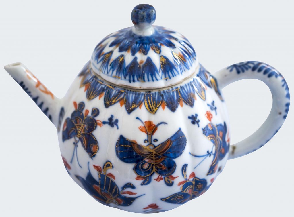 Painted in the traditional imari palette, with a design representing butterflies and floral motifs.