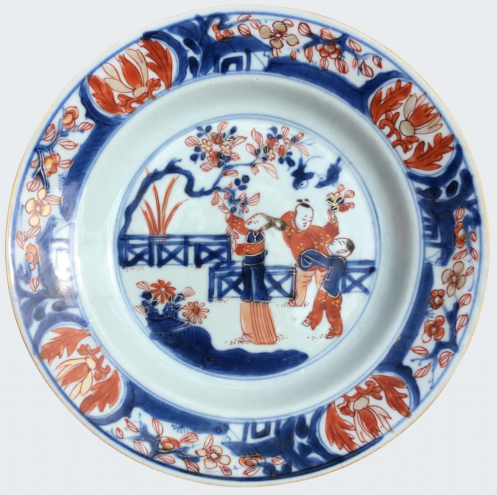 A Chinese Imari plate decorated with figures. Kangxi period.