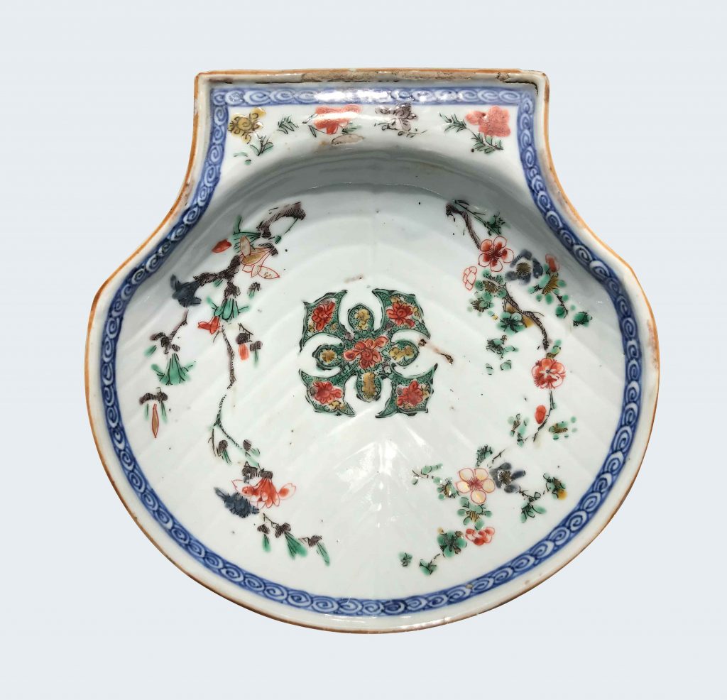 A Chinese export porcelain shell shaped dish. Kangxi period