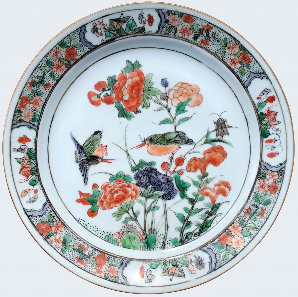 A Chinese famille verte plate decorated with kingfishers. Kangxi period.