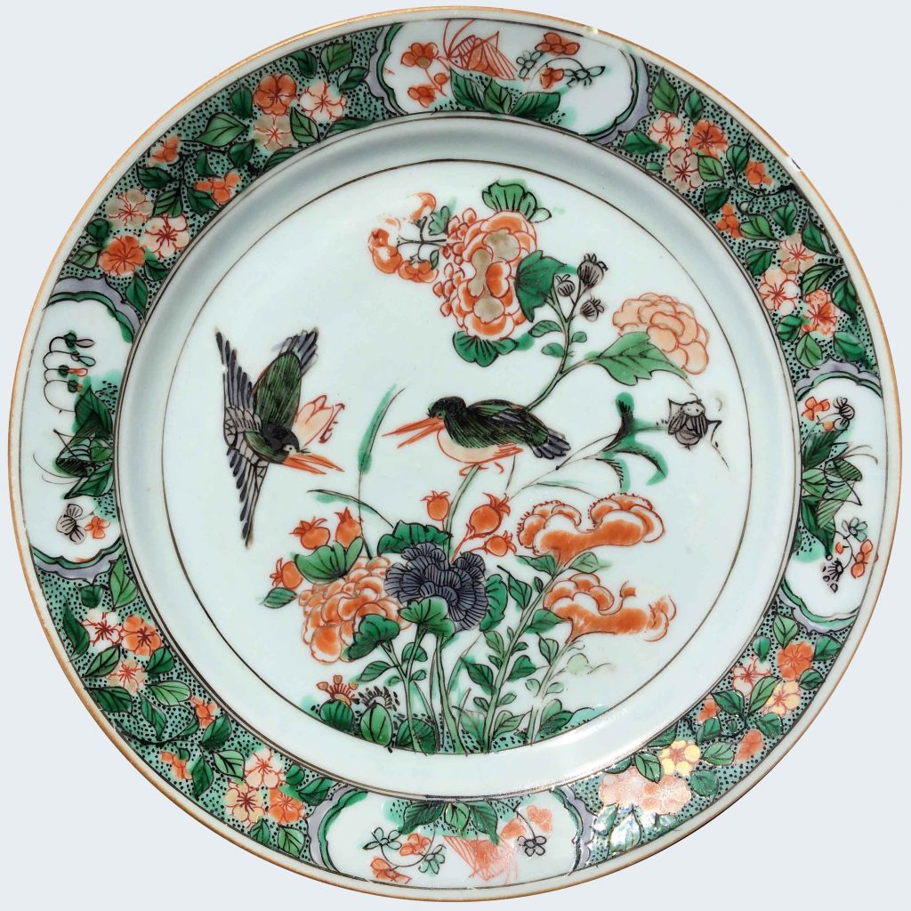 A Chinese famille verte plate decorated with kingfishers. Kangxi period.