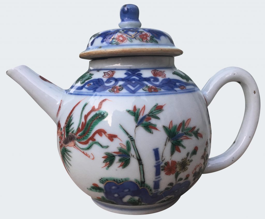 A Chinese famille verte teapot decorated with a lion and a phoenix. Kangxi period.