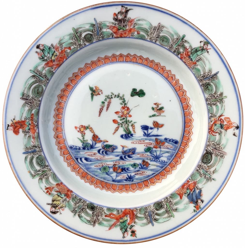 A Chinese famille verte “mandarin ducks” dish. Kangxi period