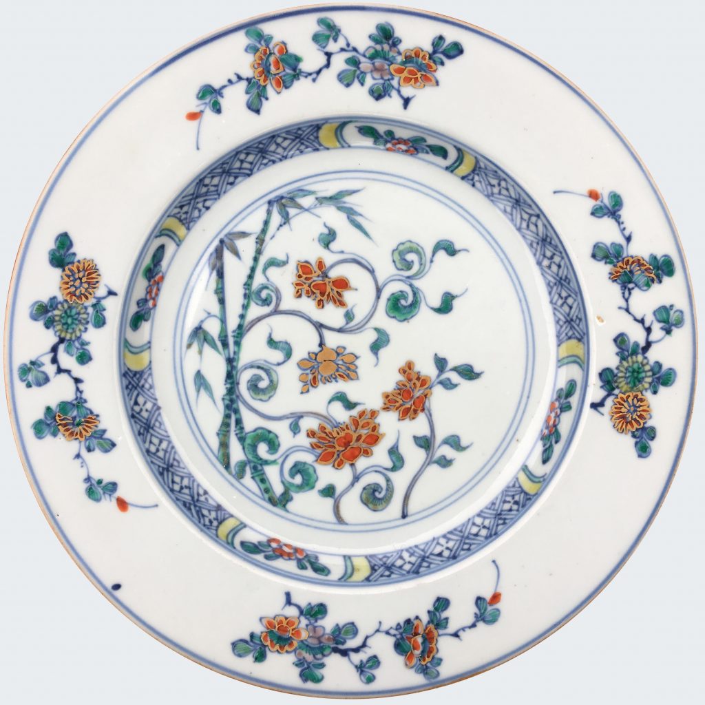 An unusual doucai plate decorated with a floral design. Kangxi period.