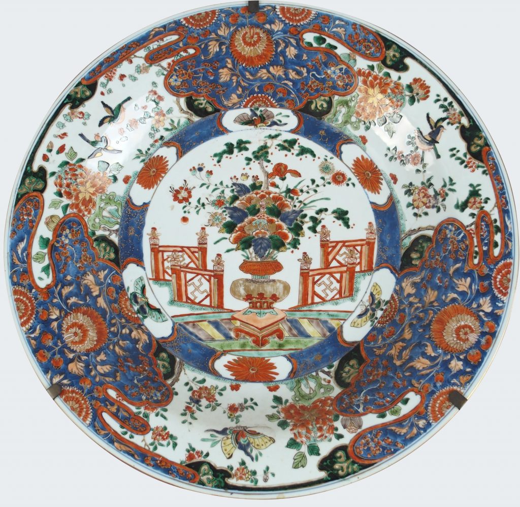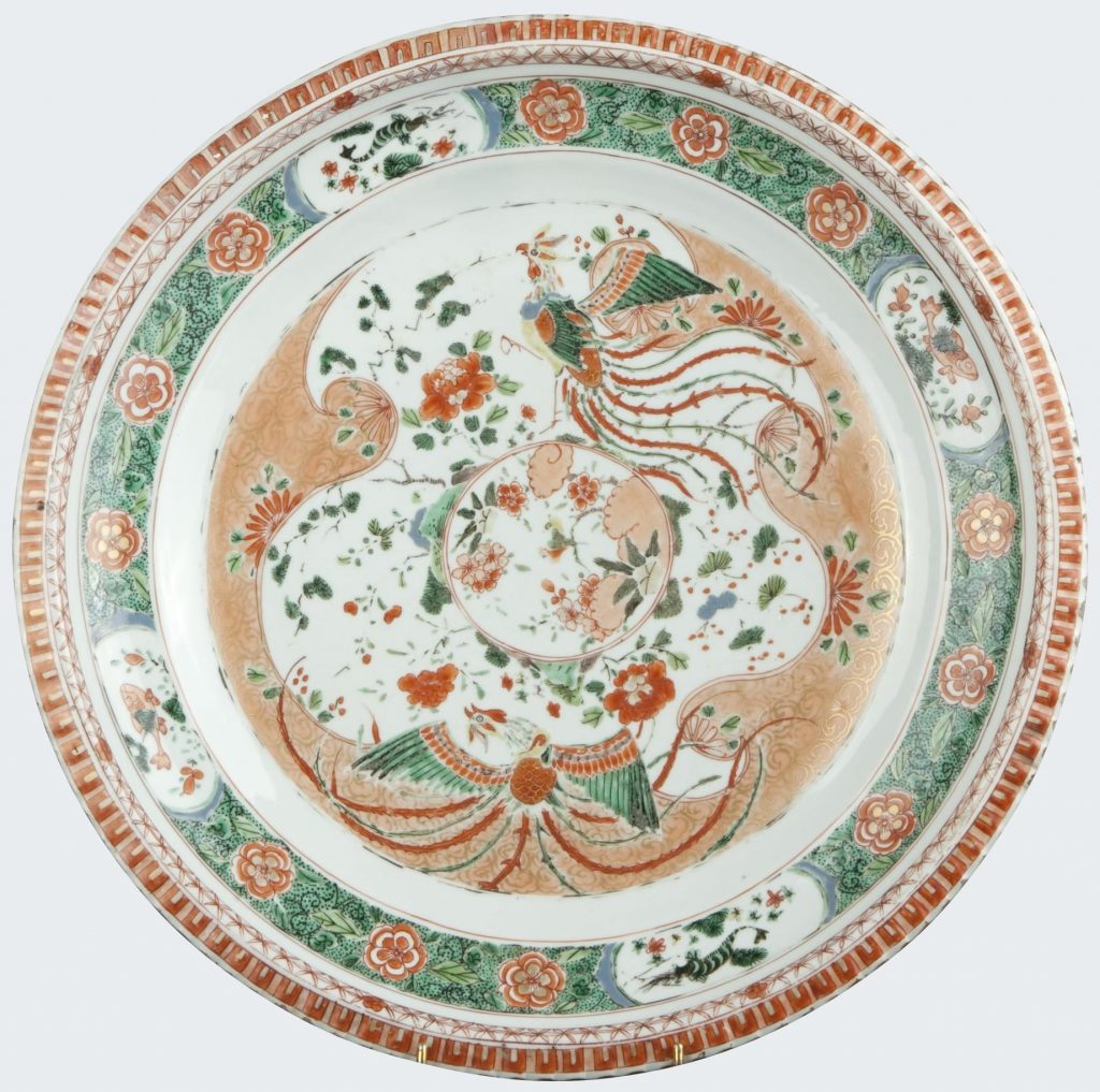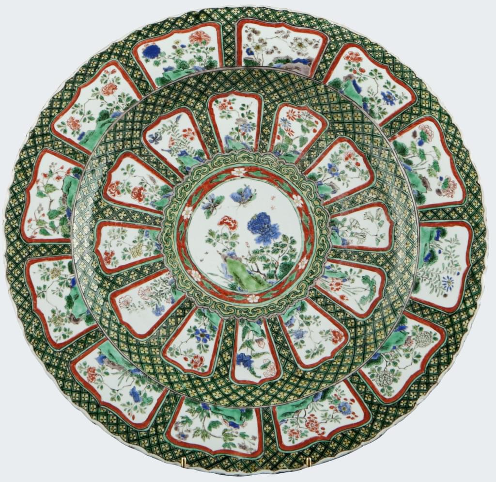 A massive Chinese famille verte “Stanislaw pattern” charger. Kangxi period.