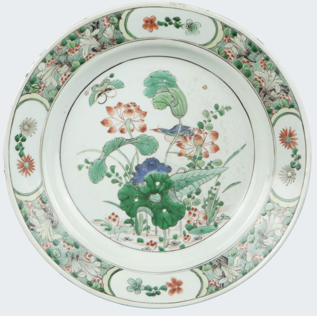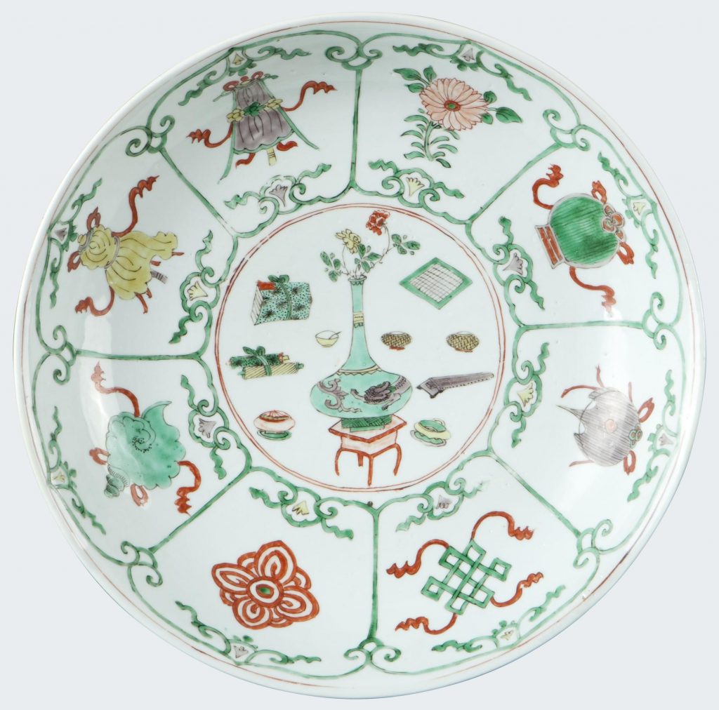 A Chinese famille verte dish decorated with Buddhist emblems. Kangxi period.