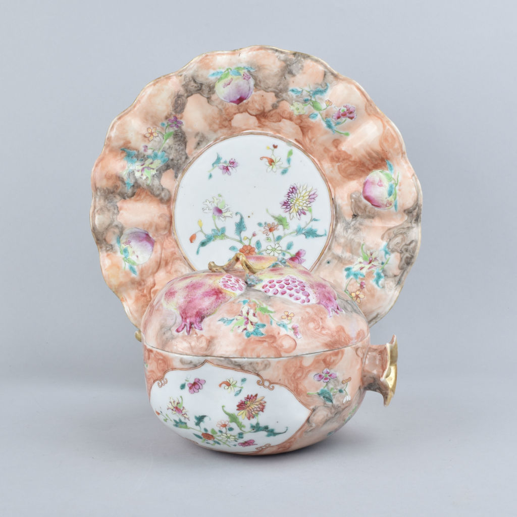 Unusual Chinese “faux marbre” pomegranate-form tureen. Qianlong