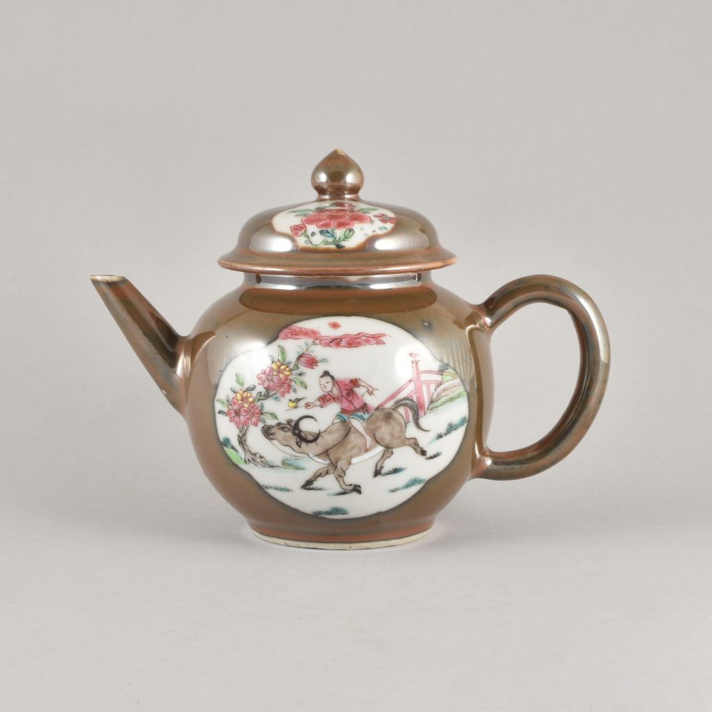 A very fine Chinese famille rose “batavian ware” teapot decorated with figures. Early Qianlong period