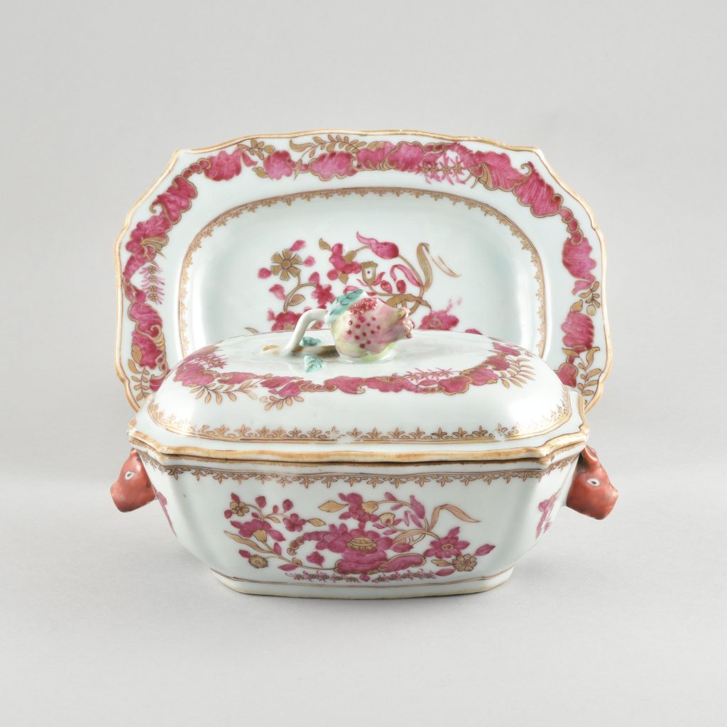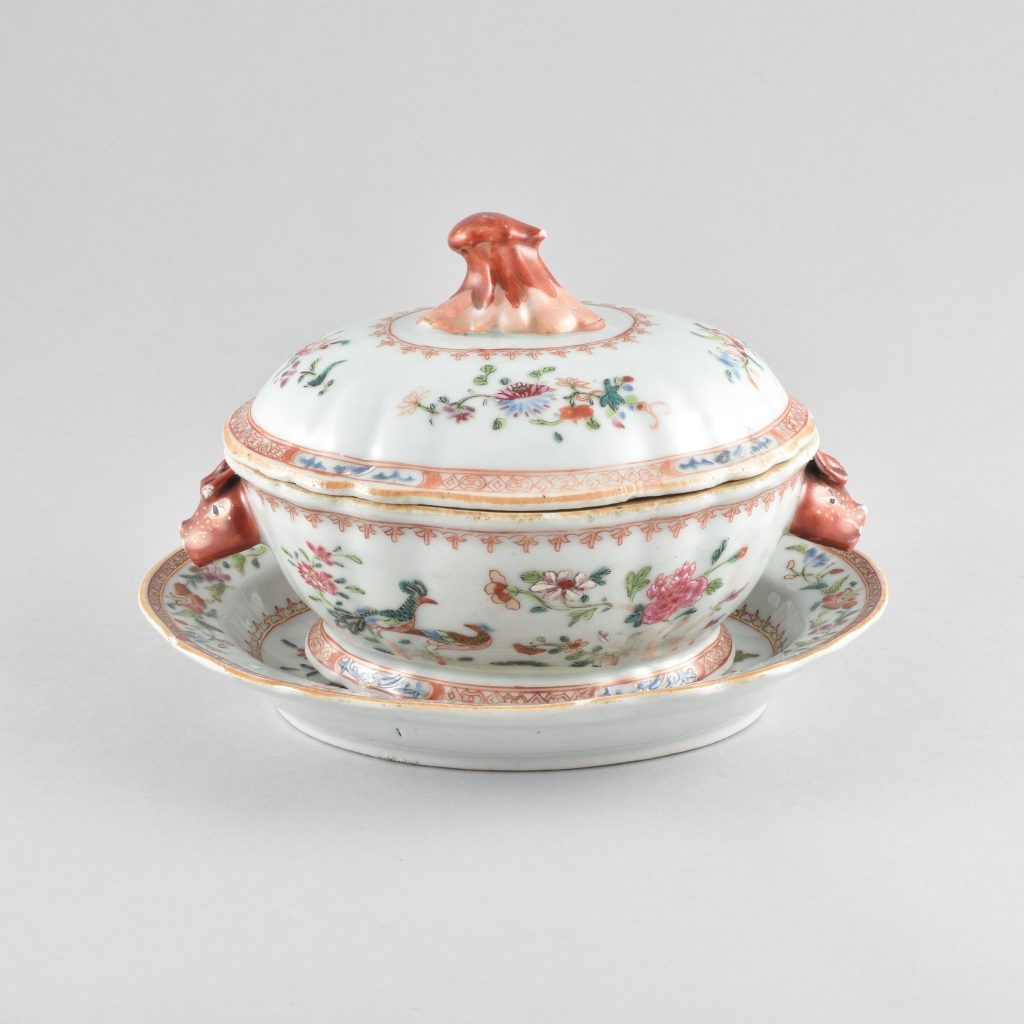 A Chinese famille rose “double peacock” sauce tureen. Qianlong period