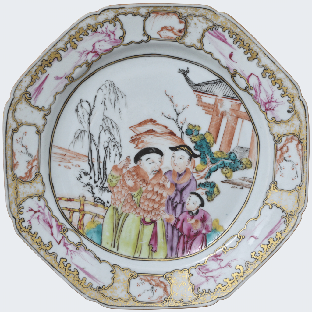 Decorated in the famille rose, with a couple of Mandarins with their son.