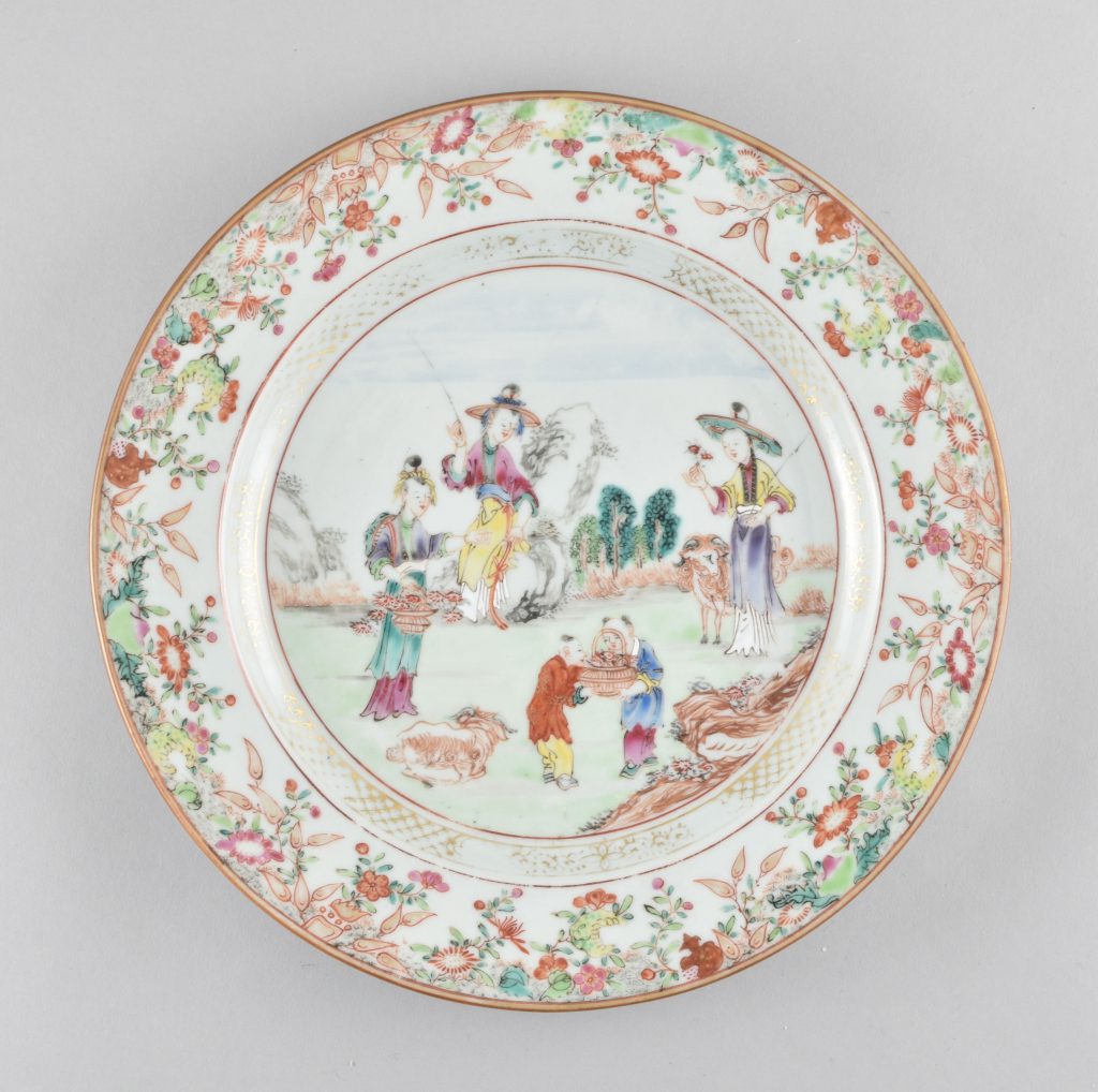A Chinese famille rose plate decorated with figures. Qianlong period.