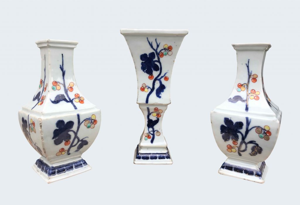 A Chinese ‘Pronk’ three-pieces “foxgrape” garniture. Qianlong period