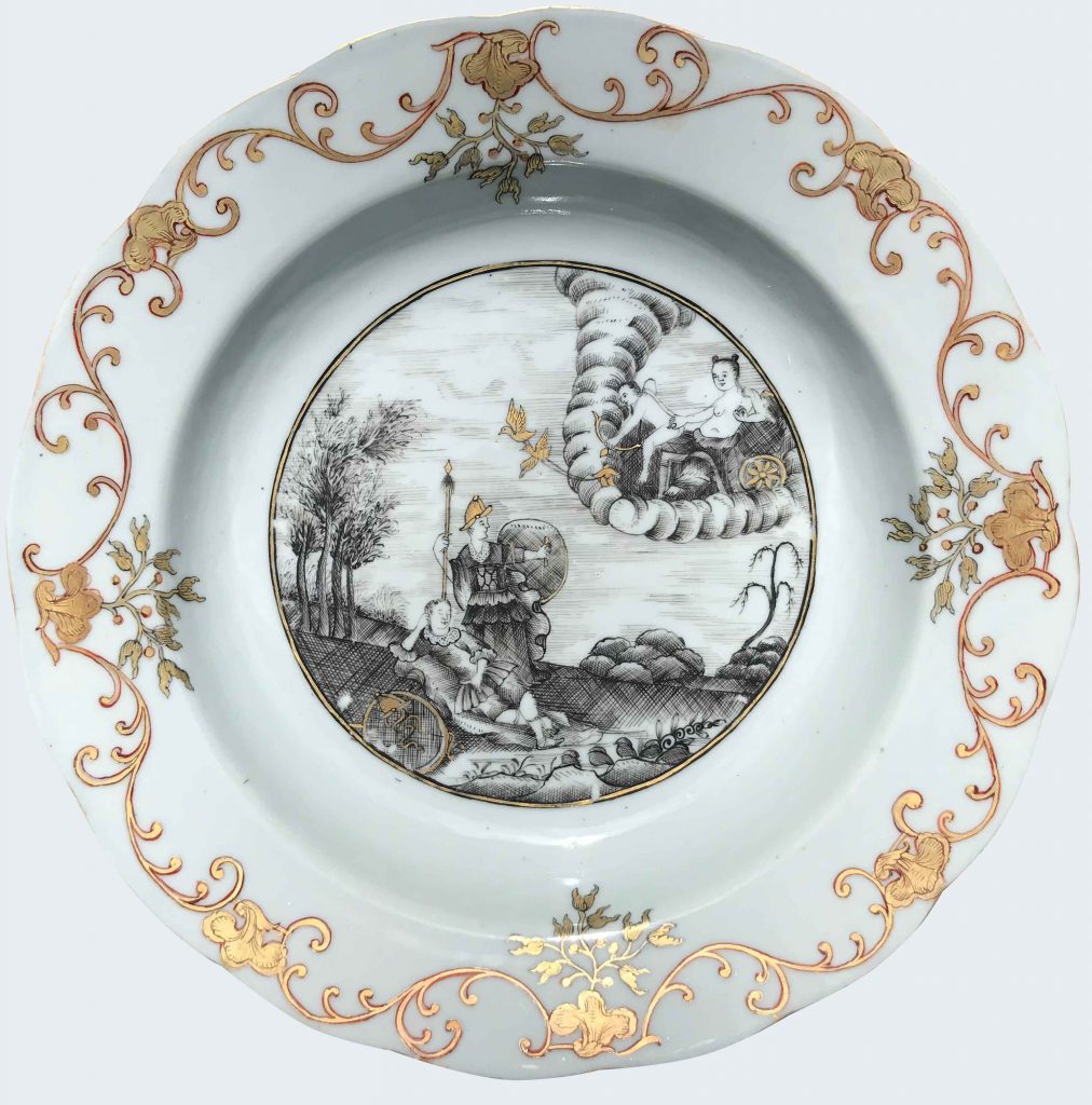 A Chinese “en grisaille” plate decorated with a mythological subject. Qianlong period