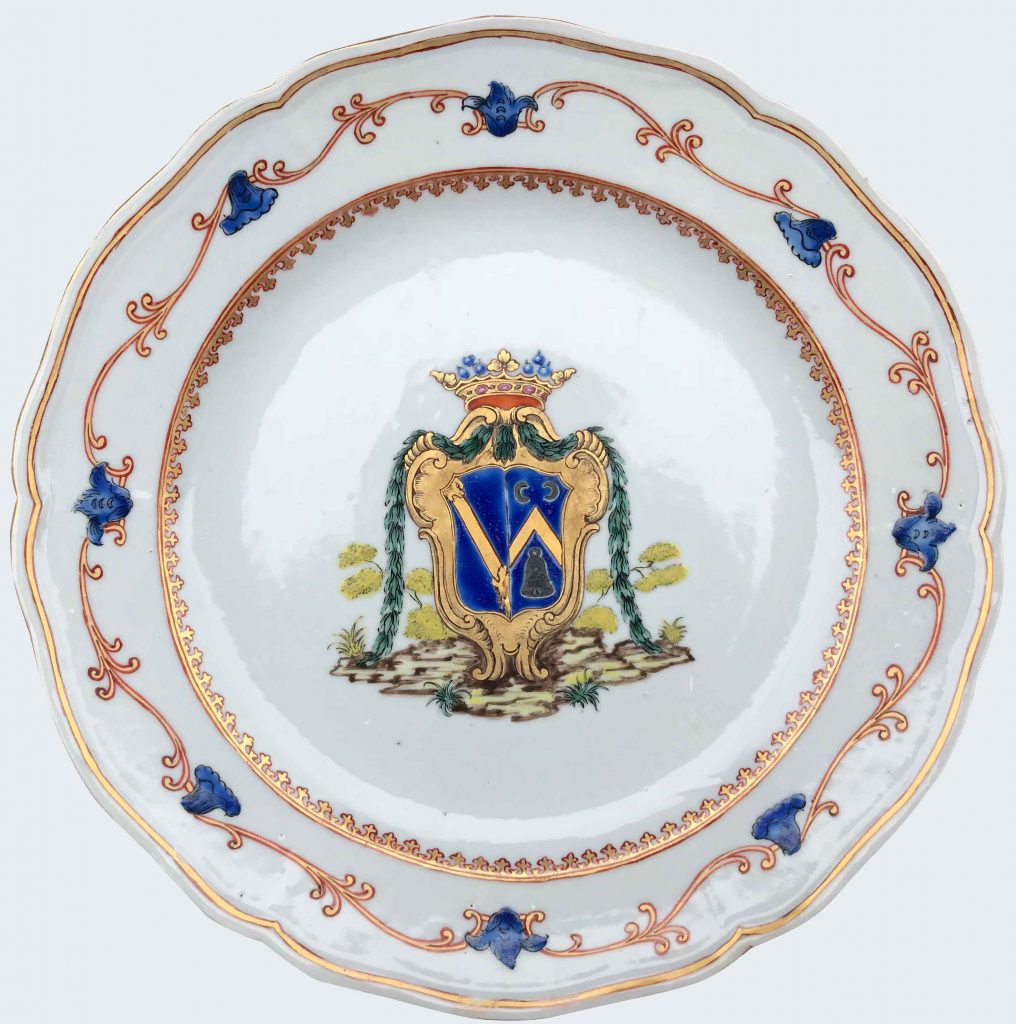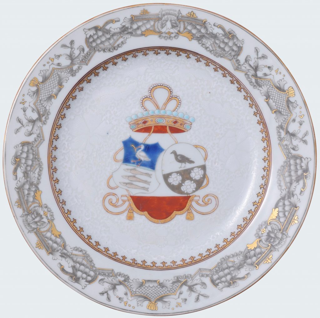 A Chinese armorial plate for the Dutch market (Van Schoonhoven and Geraerds accollee). Qianlong period.