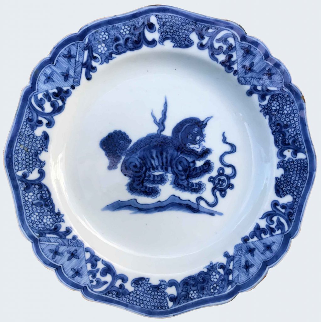 A pair of blue and white plates decorated with dogs of Fo. Qianlong period.