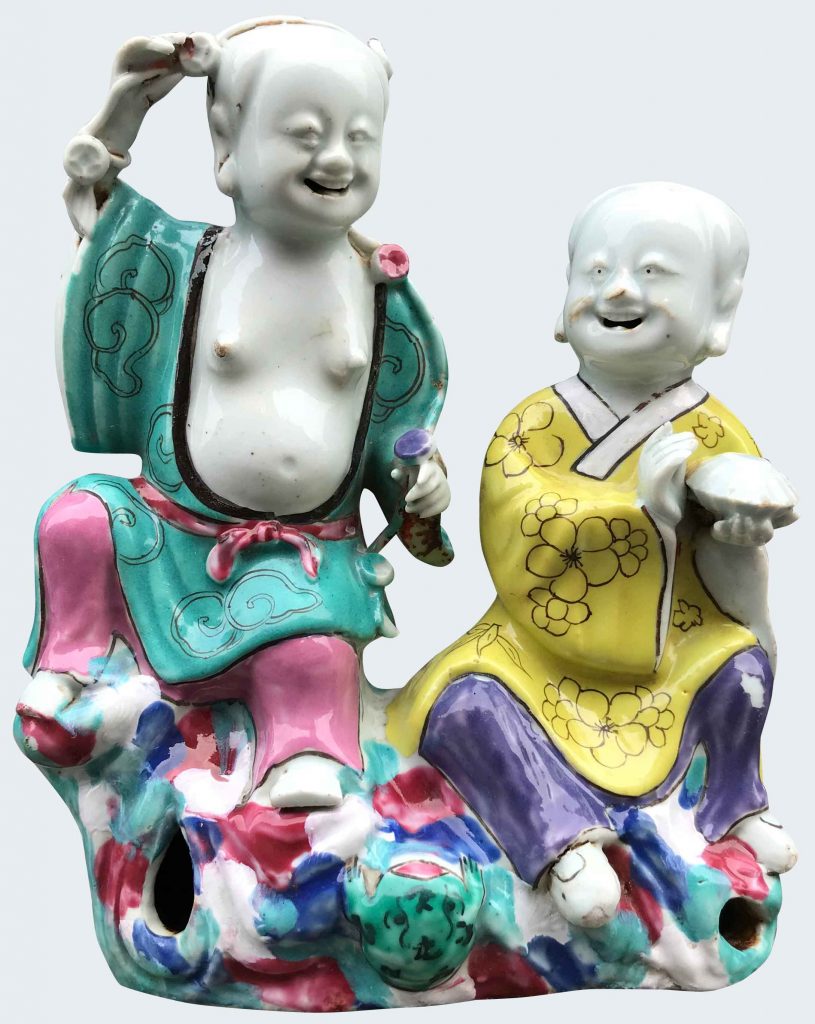 A large Chinese famille rose group representing the Hehe Erxian. Qianlong period