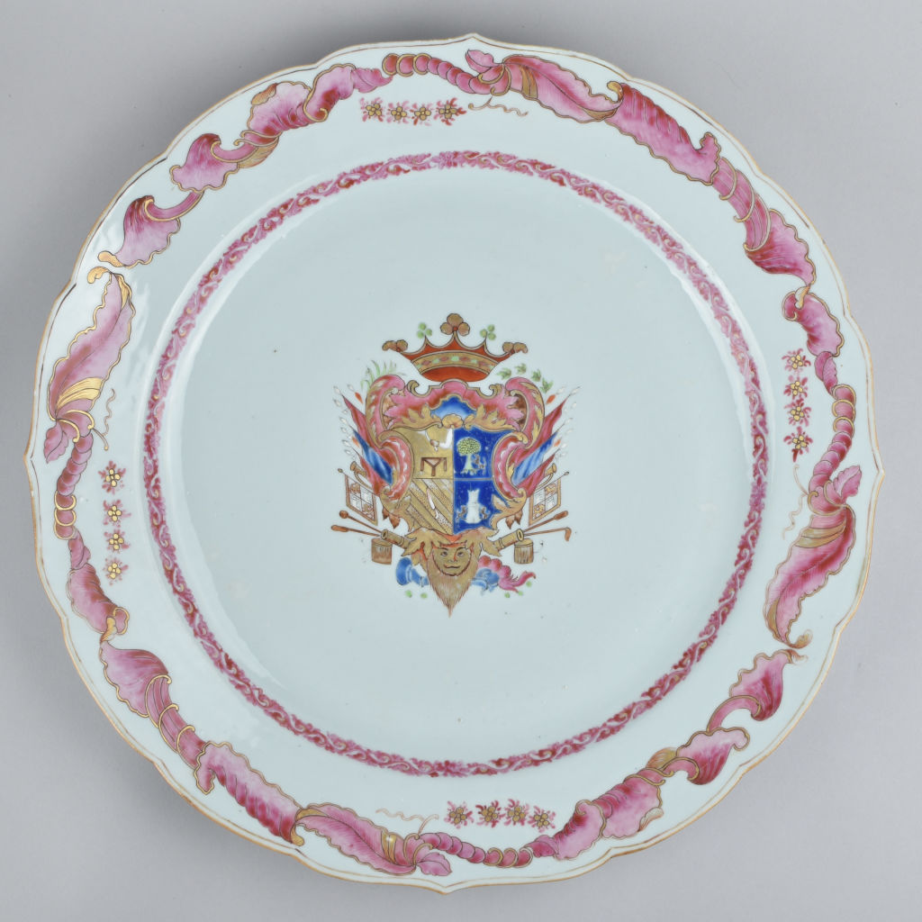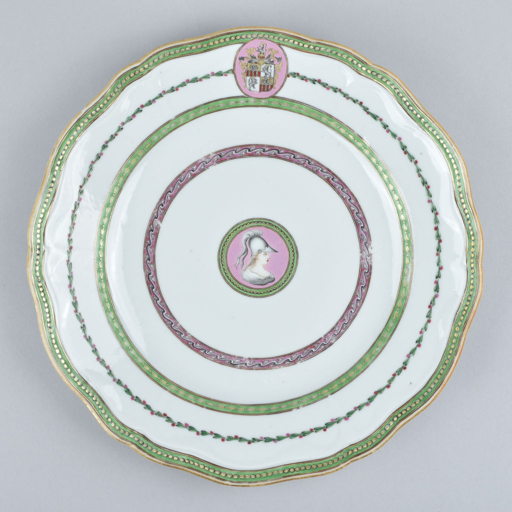 A Chinese armorial neoclassical ‘portrait’ plate for the Danish market. Qianlong