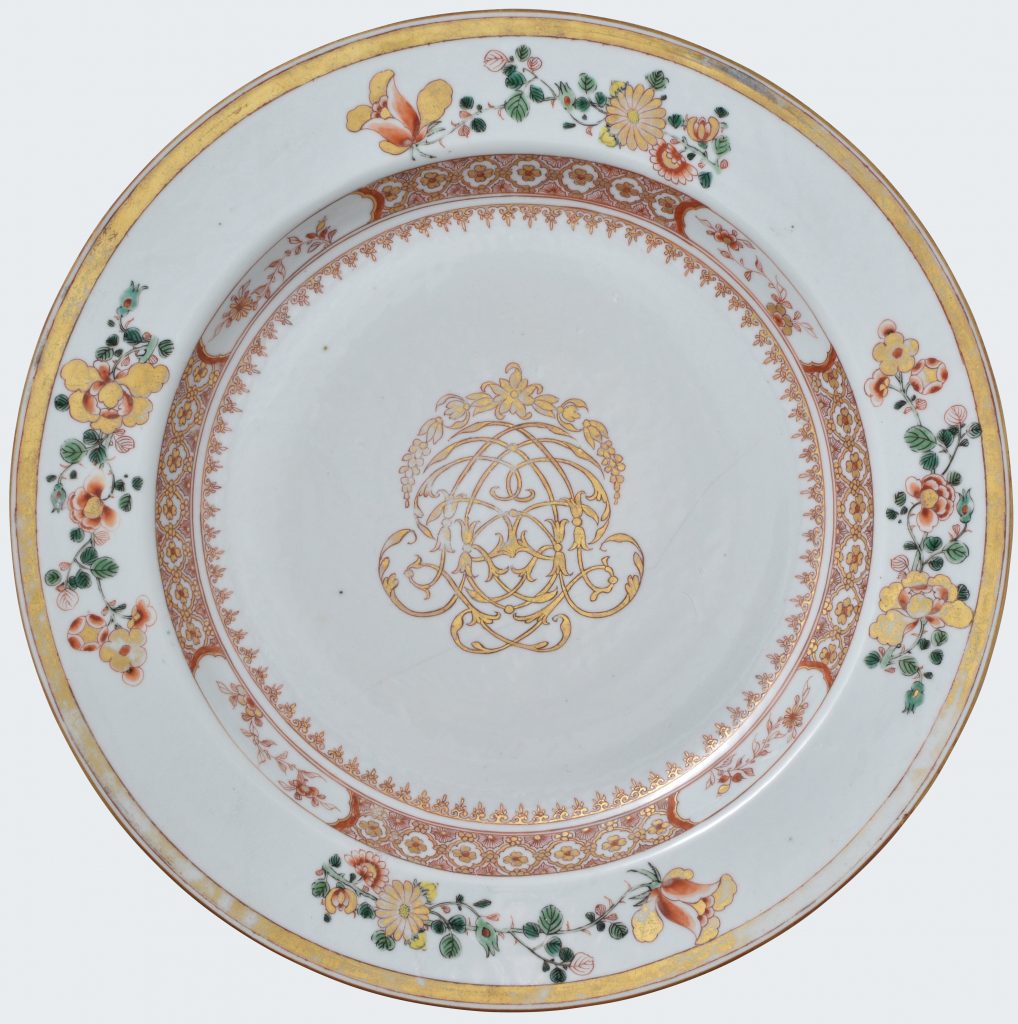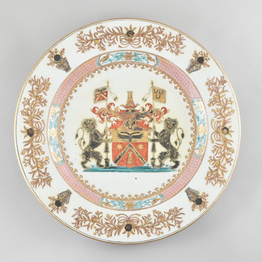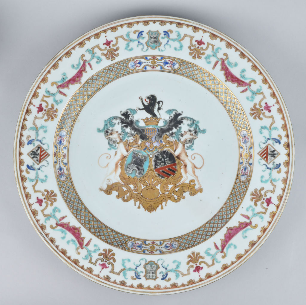 Plat armorié pour le marché belge (Jacobus-Gerardus de Knyff) en porcelaine de Chine d’époque Yongzheng