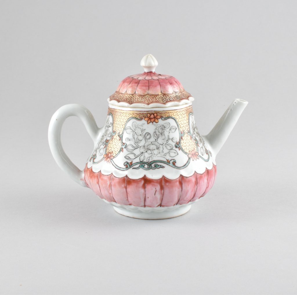Théière peinte dans les émaux de la famille rose en porcelaine de Chine d’époque Yongzheng