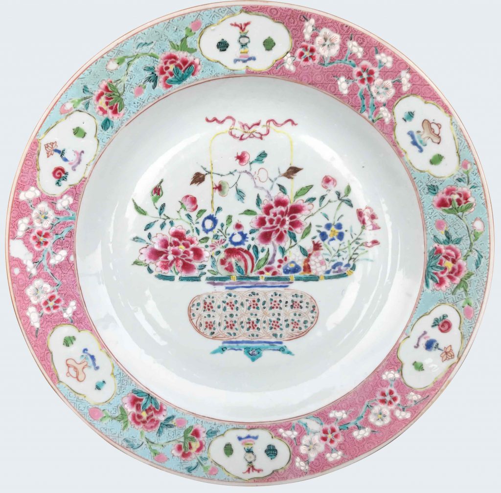 Grand plat en porcelaine de Chine à décor d’une corbeille fleurie en porcelaine de Chine d’époque Yongzheng