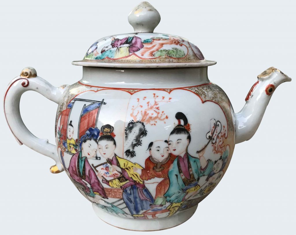 Très grande verseuse à punch à décor « mandarins » en porcelaine de Chine d’époque Qianlong