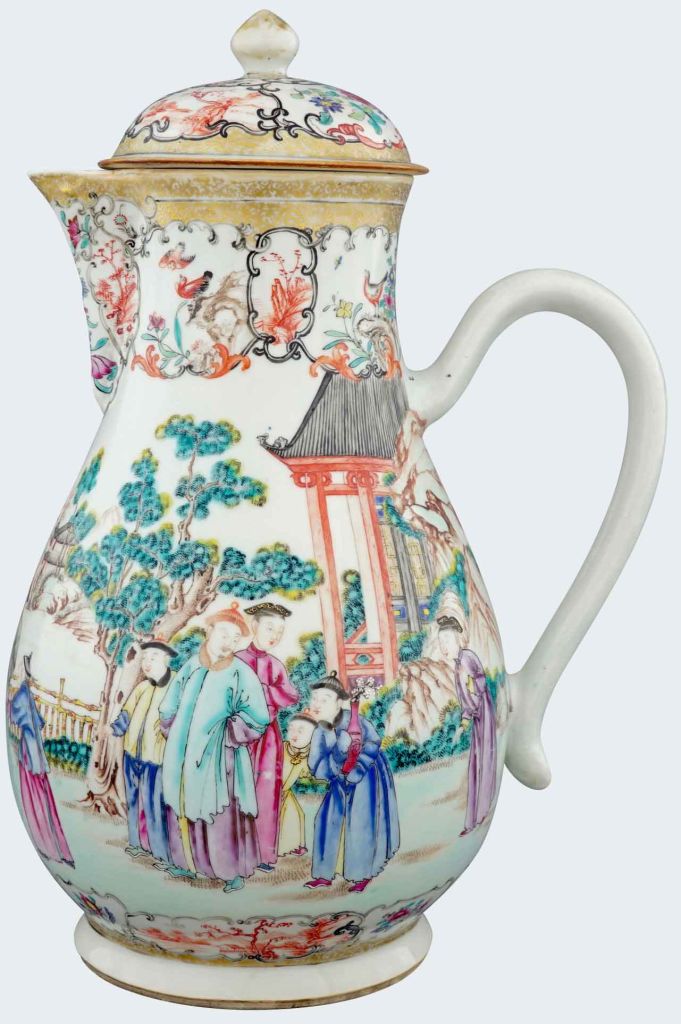 Très grande verseuse à décor de mandarins en porcelaine de Chine d’époque Qianlong