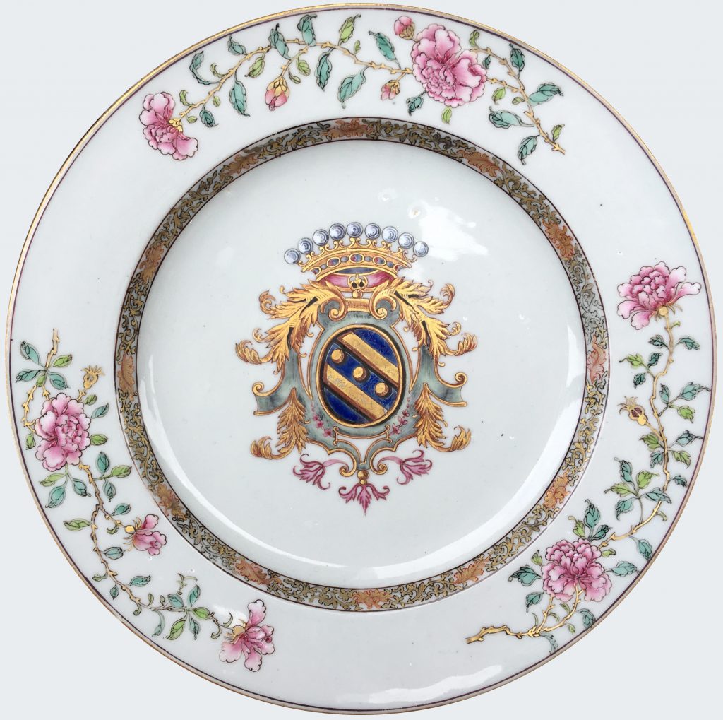 Paire d’assiettes à décor armorié pour le marché français en porcelaine de Chine d’époque Yongzheng