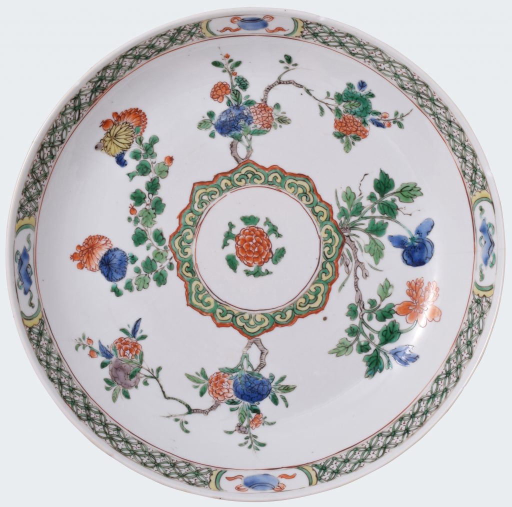 Large coupe peinte dans les émaux de la famille verte en porcelaine de Chine d’époque Kangxi